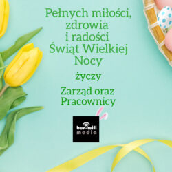 Szanowni klienci, współpracownicy, partnerzy! Z okazji świąt Wielkanocy, życzymy w imieniu całego zespołu BusWiFichwil pełnych prawdziwej radości, serdecznych spotkań w gronie rodziny i przyjaciół.Niech świąteczne dni przyniosą odpoczynek i staną się wytchnieniem w zabieganej codzienności.Wesołego “Alleluja !!!